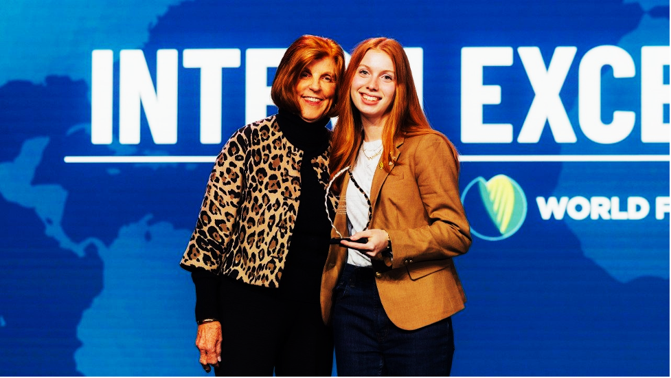 Figure: Ariadne Pappa (right) is pictured with Jeanie Borlaug-Laube (left) during youth recognition moment at the 2025 Innovate for Impact awards ceremony.