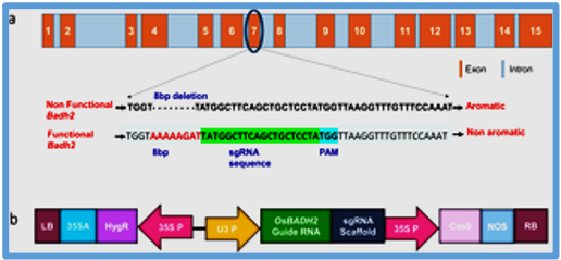 Targeted disruption of OsBADH2 induces basmati aroma in the popular indica rice variety IR-64 using CRISPR/Cas9