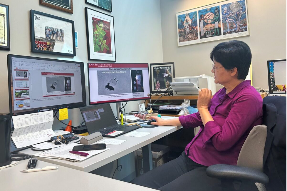 Iowa State University Professor Kan Wang studies Agrobacterium. (Photo Source: Brooklyn Draisey/Iowa Capital Dispatch)